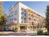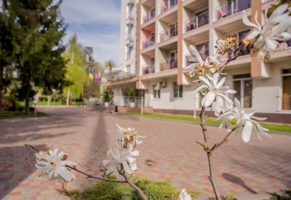 Приехать к конгресс-отелю предлагаем: • рейсовым 30 автобусом от м. «Академгородок» к ост. «Госпиталь»; • от ст. М. «Нивки» курсирует 226 автобус к ост. «Госпиталь»; • 719 маршрутка отправляется от М. «Нивки», на ост. «3 линия» выходите; • 12 трамвай курсирует от М. «Контрактовая Пл» к ост. «3 линия».